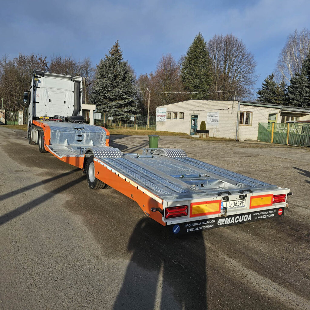 Nie jestem firmą transportową. Nie wynajmuję zestawu z kierowcą. Udostępniam wyłącznie naczepę niskopodłogową, gotową do załadunku i trasy. Jeśli masz swój ciągnik siodłowy – bierzesz sprzęt, ładujesz, jedziesz.